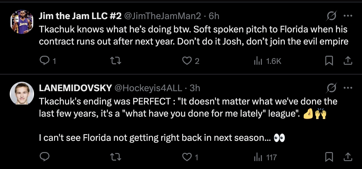 Et si jamais ça continue dans cette direction-là… la prédiction de Tkachuk va arrêter de sonner comme une folie… et commencer à ressembler à quelque chose de sérieux.