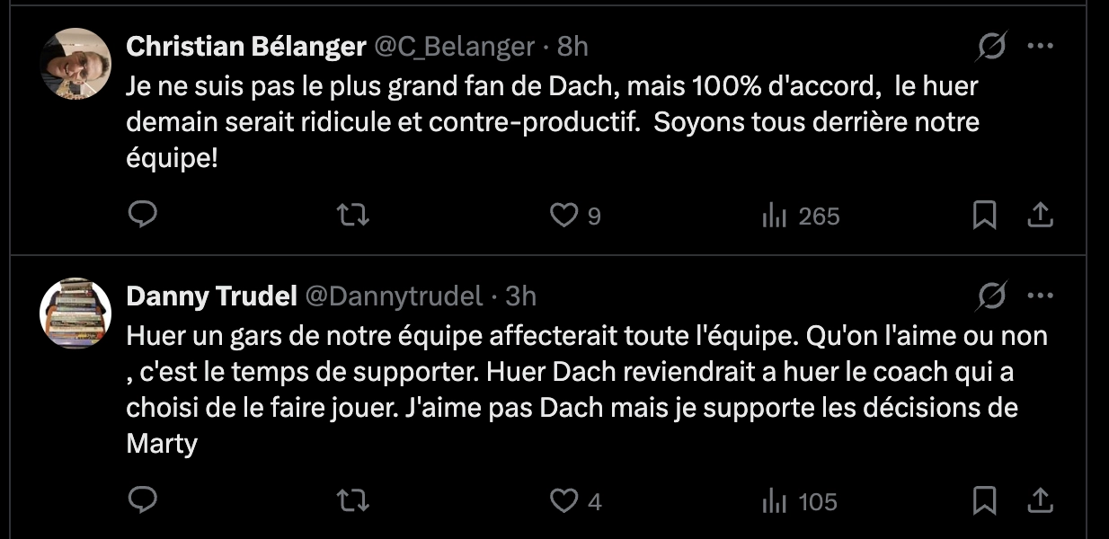 Parce que dans un marché comme Montréal, l’énergie du Centre Bell peut soulever un joueur… ou le plomber encore plus profondément. Dans le cas de Dach, la marge est mince. La confiance, en ce moment, tient à peu de choses.